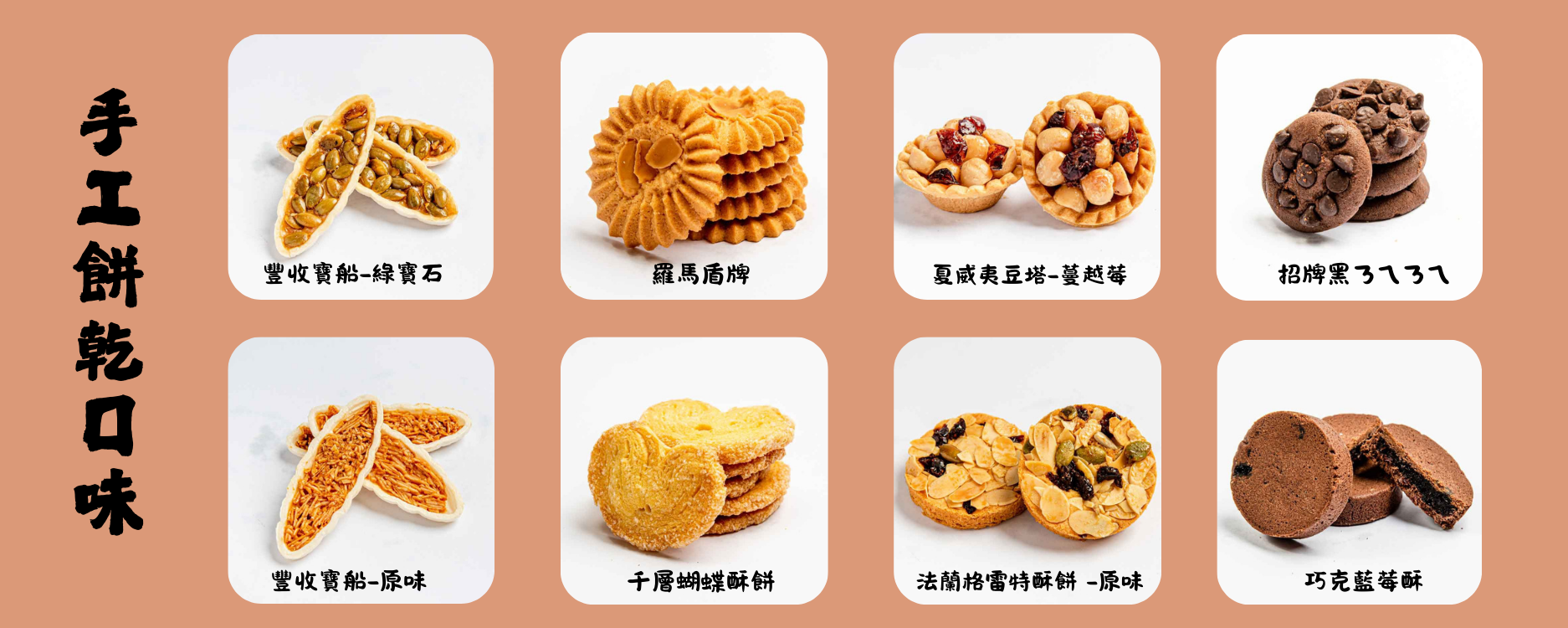 西式餅乾一層,固定8種餅乾口味。